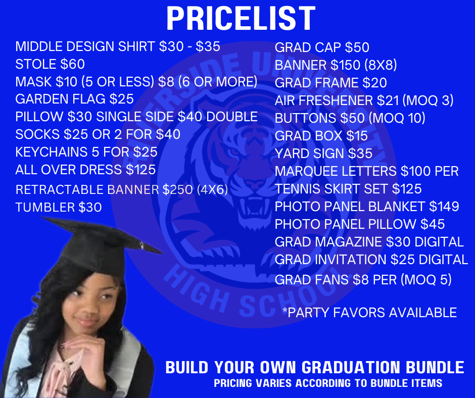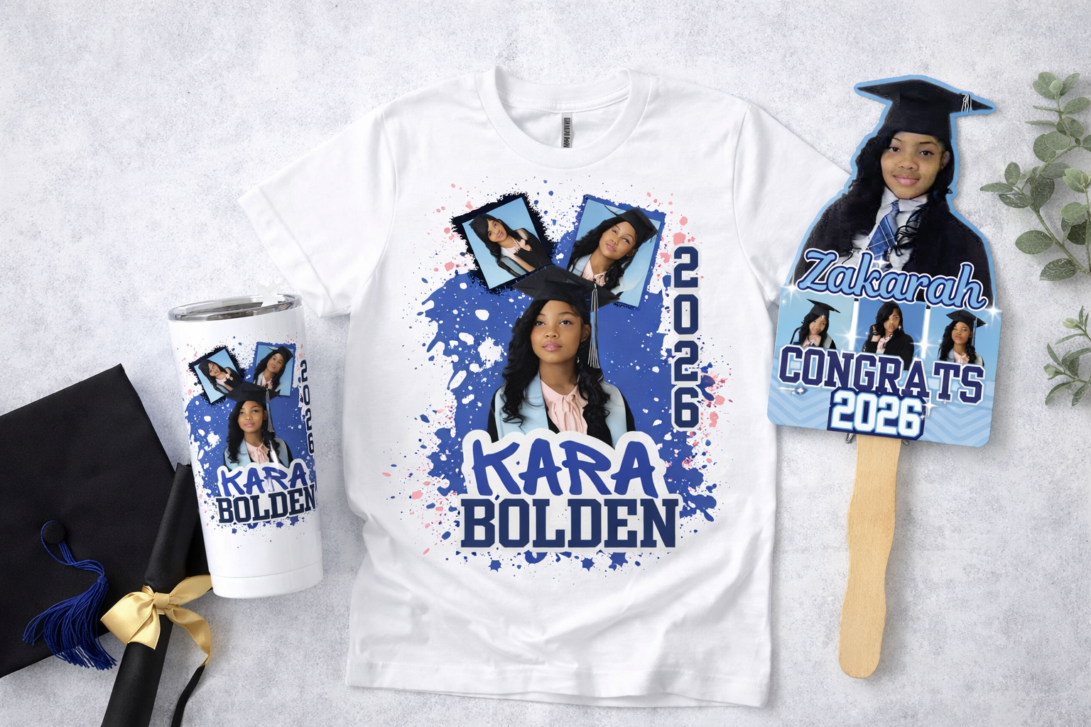 From personalized shirts to keepsake fans and party favors, every item is designed with love, creativity, and attention to detail — made JUST for your graduate.